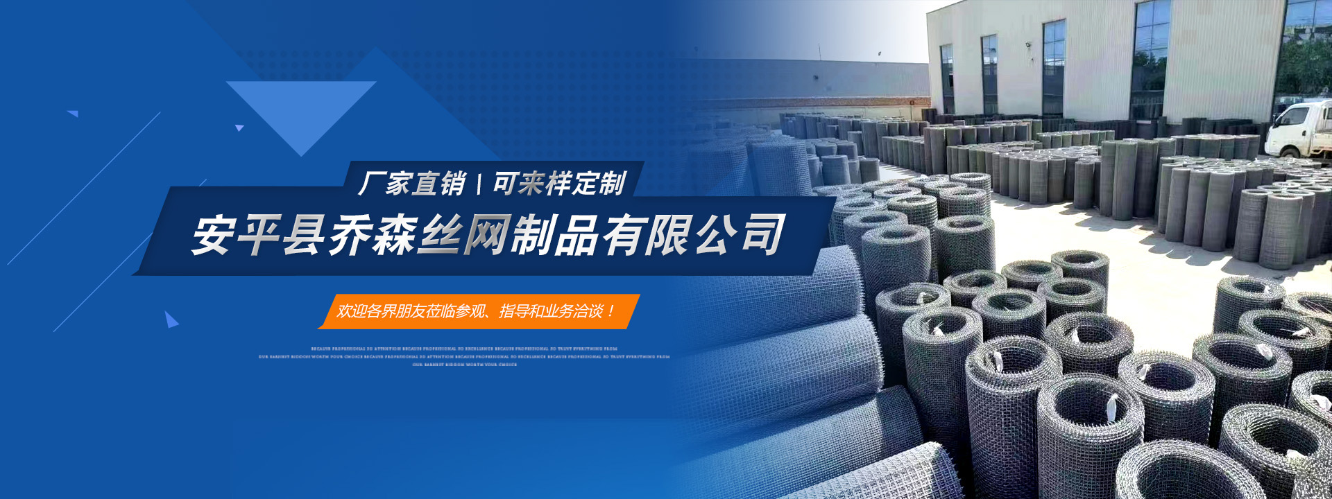 喬森絲網(wǎng)成立于2014年9月,位于中國絲網(wǎng)之鄉(xiāng)-河北省安平縣,是一家專注于生產(chǎn)金屬絲編織網(wǎng)、金屬網(wǎng)板沖孔及相關(guān)金屬裝飾絲網(wǎng)深加工產(chǎn)品的企業(yè)。從一個(gè)家庭式的小工坊到公司多年來,一直本著以“質(zhì)量求生存,信譽(yù)謀發(fā)展”的生產(chǎn)原則兢兢業(yè)業(yè)穩(wěn)步向前,贏得了 一大批忠實(shí)客戶的廣泛贊譽(yù)。然騏驥一躍,不能十步,駑馬十駕,功在不舍。我們將以更周到的服務(wù),更過硬的質(zhì)量,不忘初心,為廣大的客戶提供更優(yōu)質(zhì)的服務(wù)。